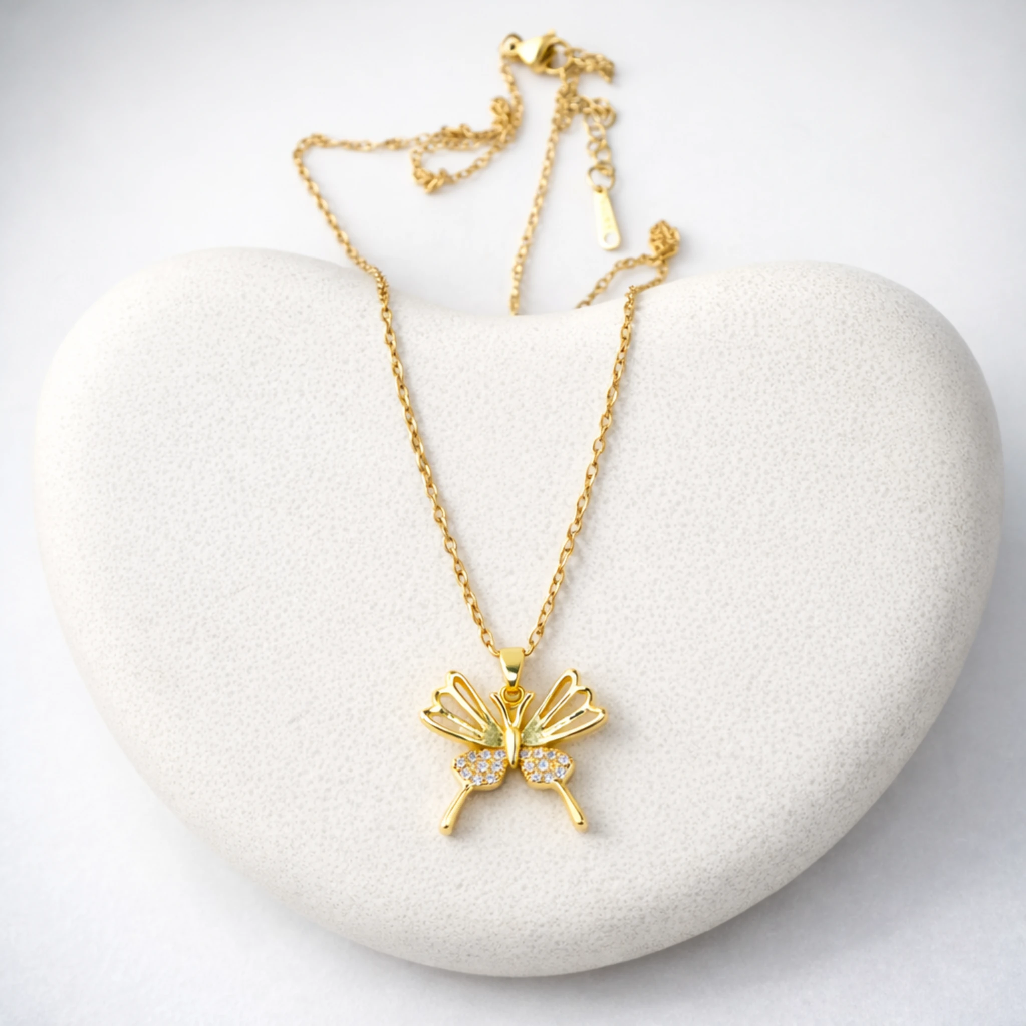 One of the biggest advantages of this butterfly gold pendant necklace is its water-resistant design. It is safe for normal daily activities such as hand washing or light water exposure. However, to maintain the shine and plating quality, it is recommended to avoid direct contact with perfume, body spray, or harsh chemicals. Proper care helps preserve the jewellery’s finish and extend its lifespan.