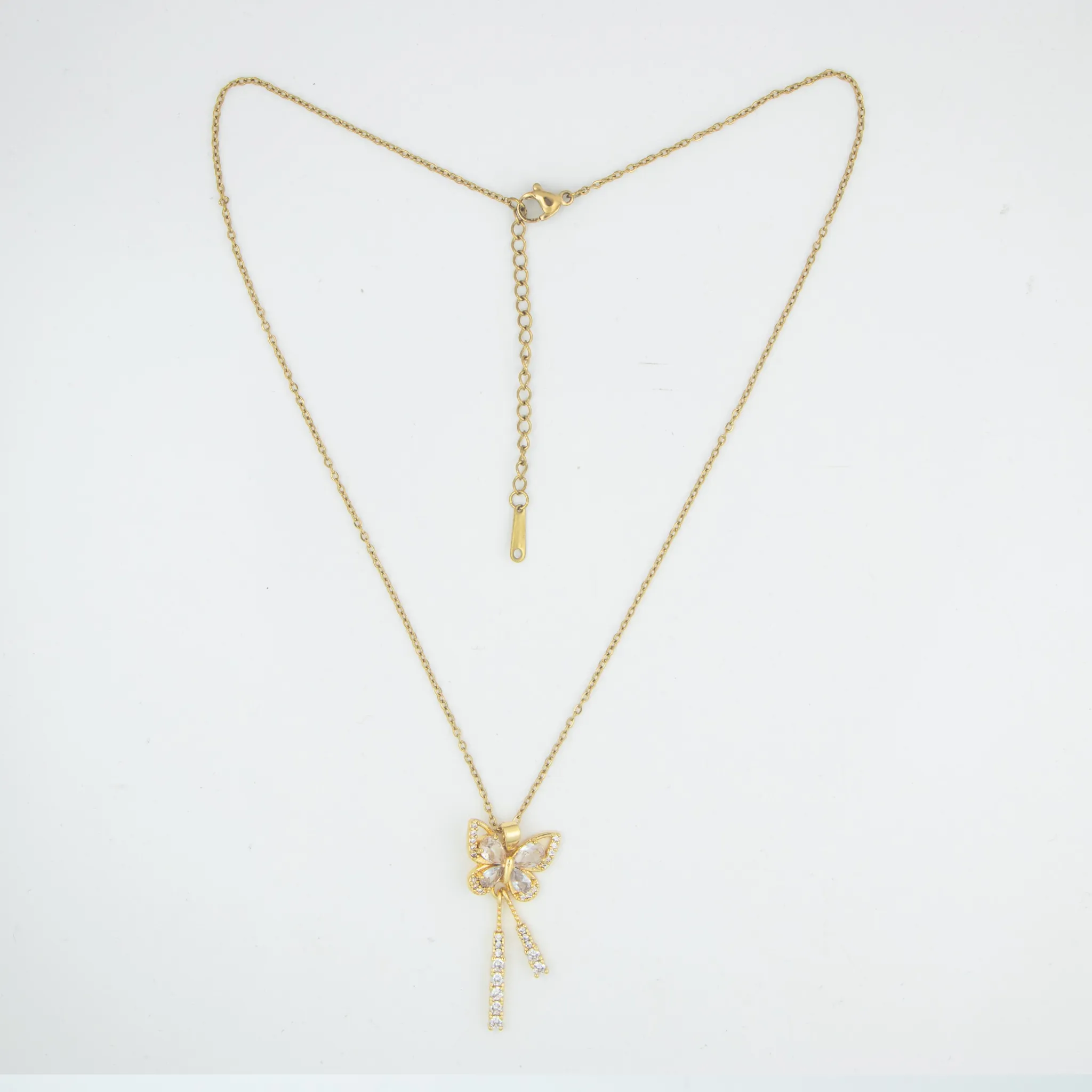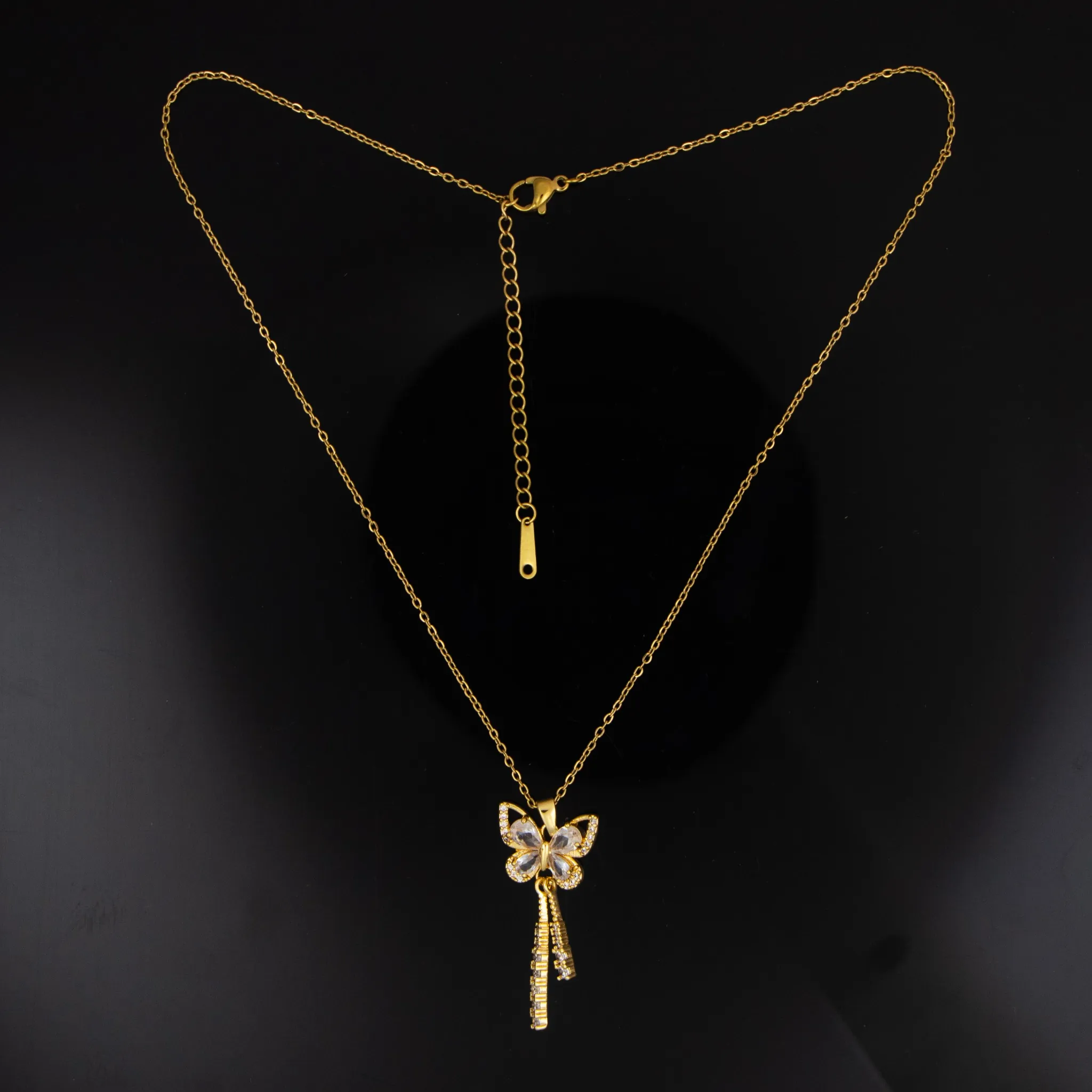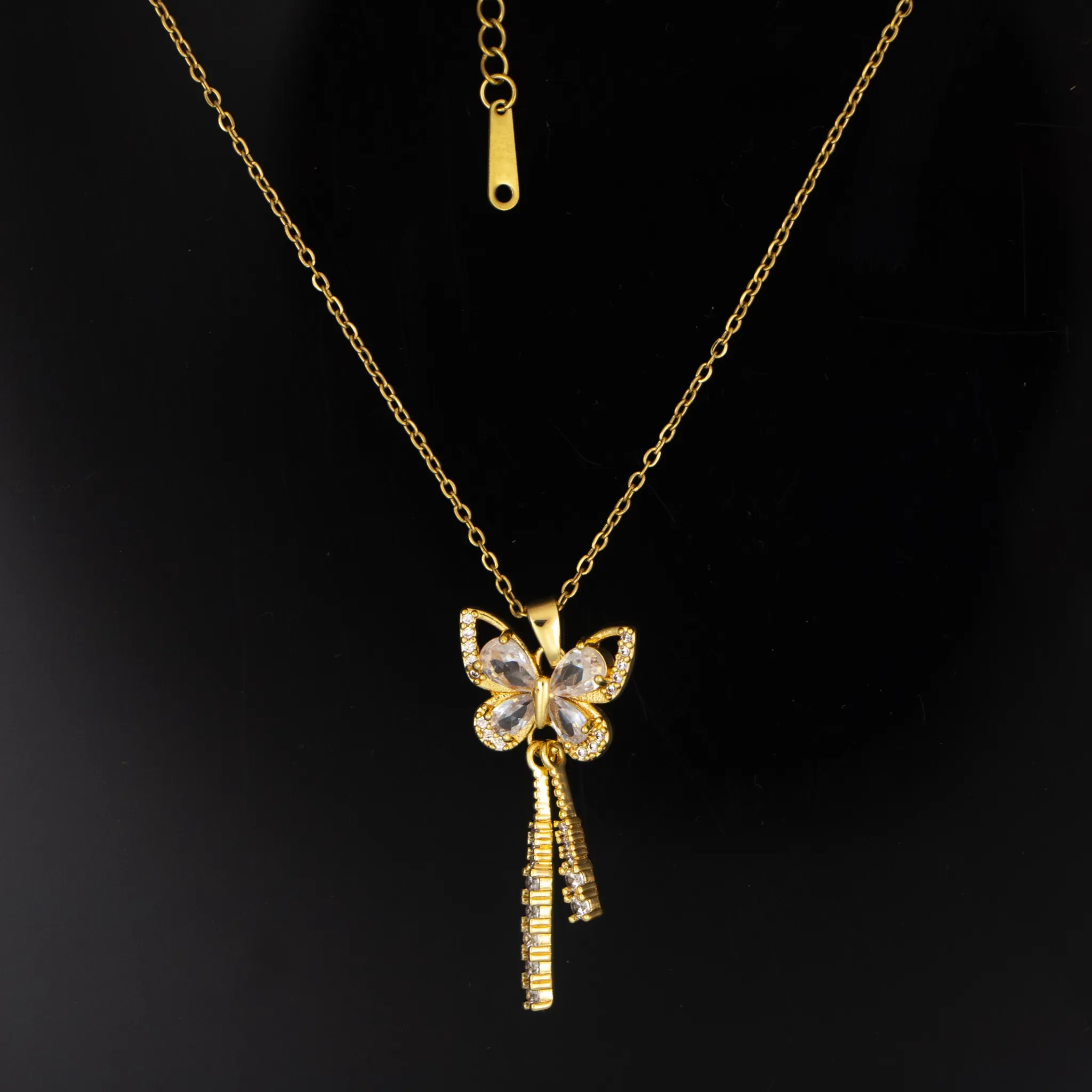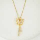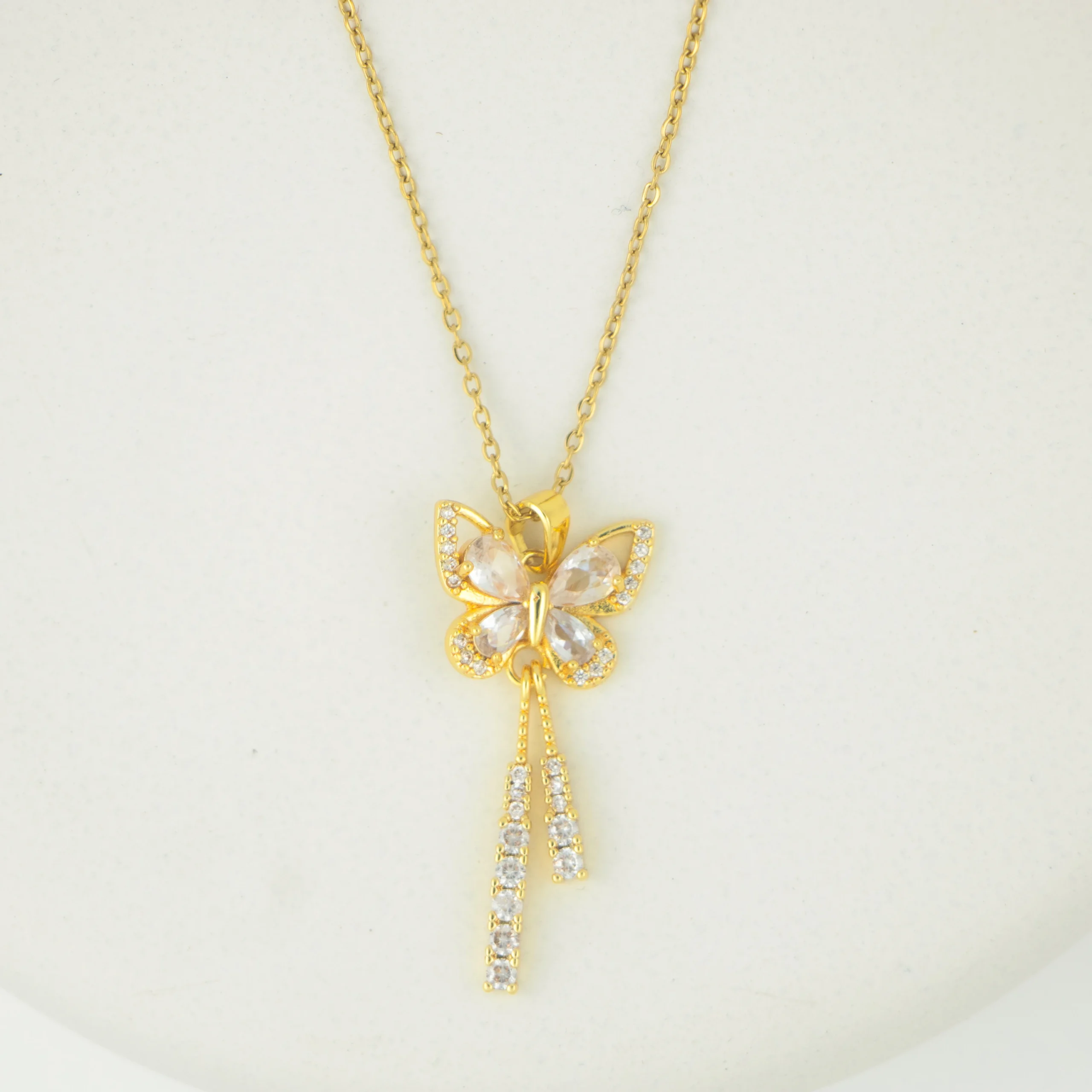 This butterfly gold pendant necklace is designed to complement both simple and stylish looks. Its elegant butterfly shape and subtle sparkle make it suitable for everyday wear without appearing heavy. The necklace is easy to style with multiple outfits and adds a refined finishing touch to your appearance. Crafted with attention to detail, it reflects quality, durability, and modern fashion, making it a reliable choice for regular use as well as special occasions.