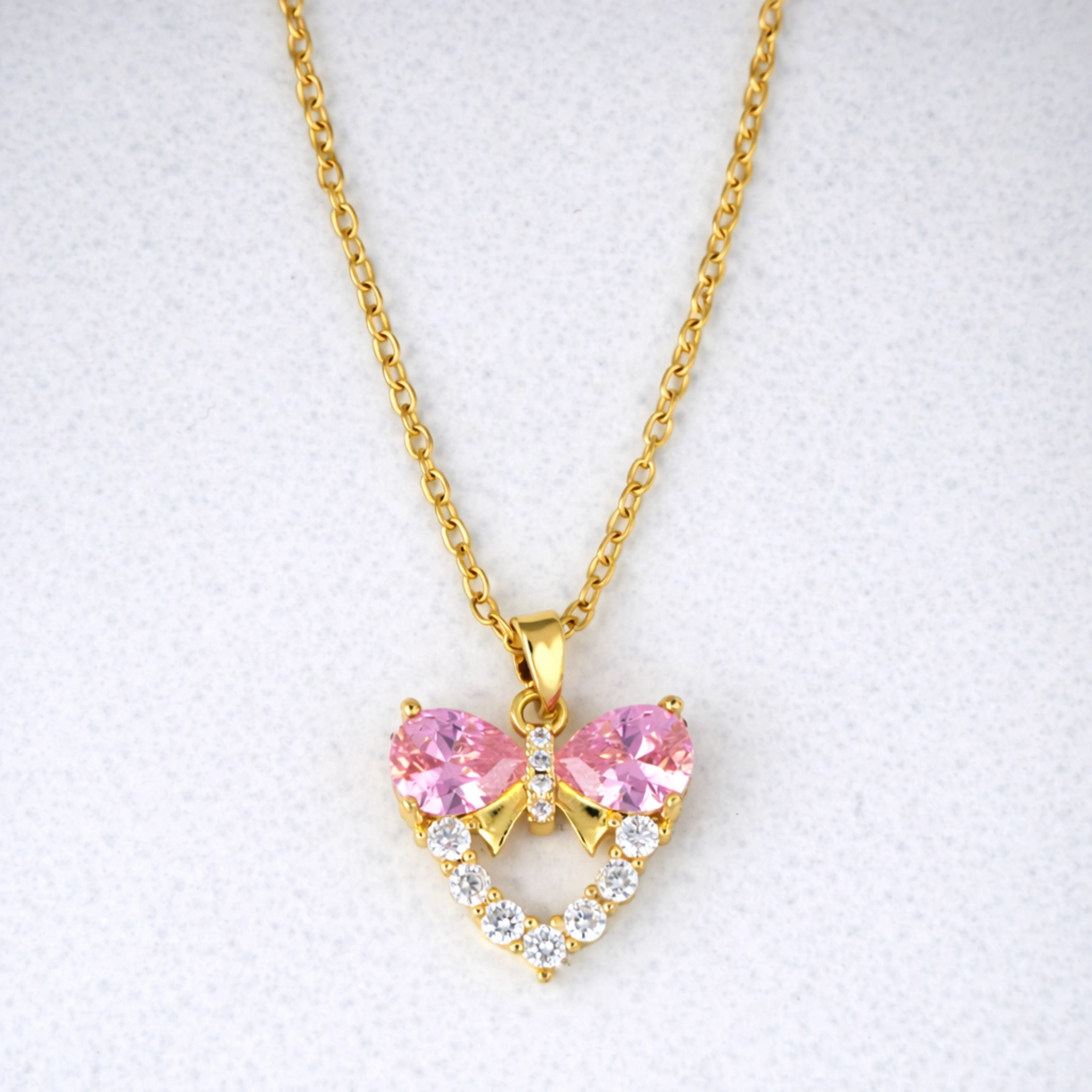 💎 Why Choose the Pink Heart Bow Gold Plated Necklace?