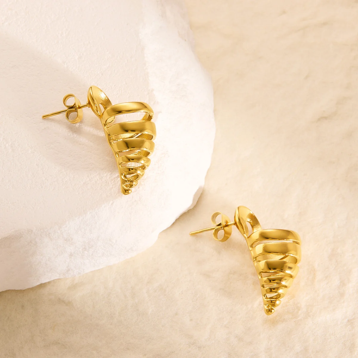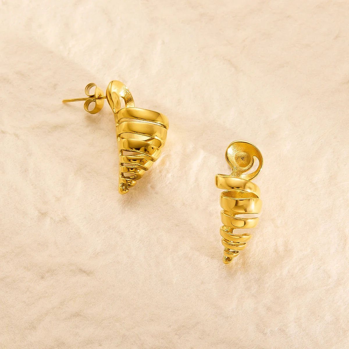 Each earring is made with high-quality 316L stainless steel, known for its durability, hypoallergenic nature, and long-lasting shine. The stainless-steel base is coated with a rich 22K gold plating, giving it a radiant finish that stays bright and beautiful even after long use. The smooth and perfectly contoured spiral shape reflects light from every angle, creating a vibrant shine that complements all skin tones. This design is made for women who appreciate jewellery that is both stylish and classy without compromising comfort.